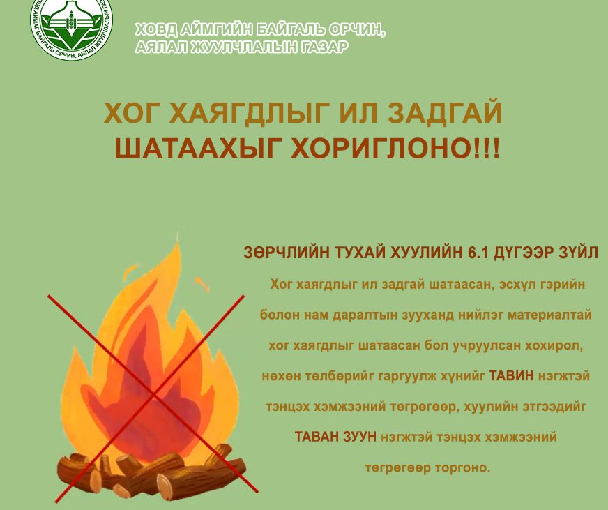 Хог хаягдлыг ил задгай шатаахыг хориглоно.